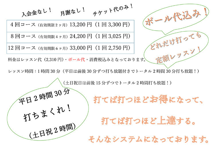料金 | 2,750円(ボール・レッスン代・消費税込み) | ||