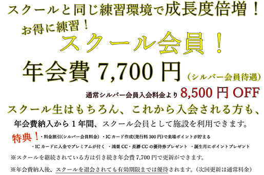 料金 | スクールカード回数券2回分(打ち放題90分込み) |