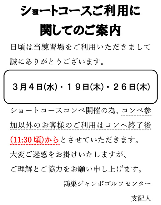 ショートコースオープンコンペのご案内